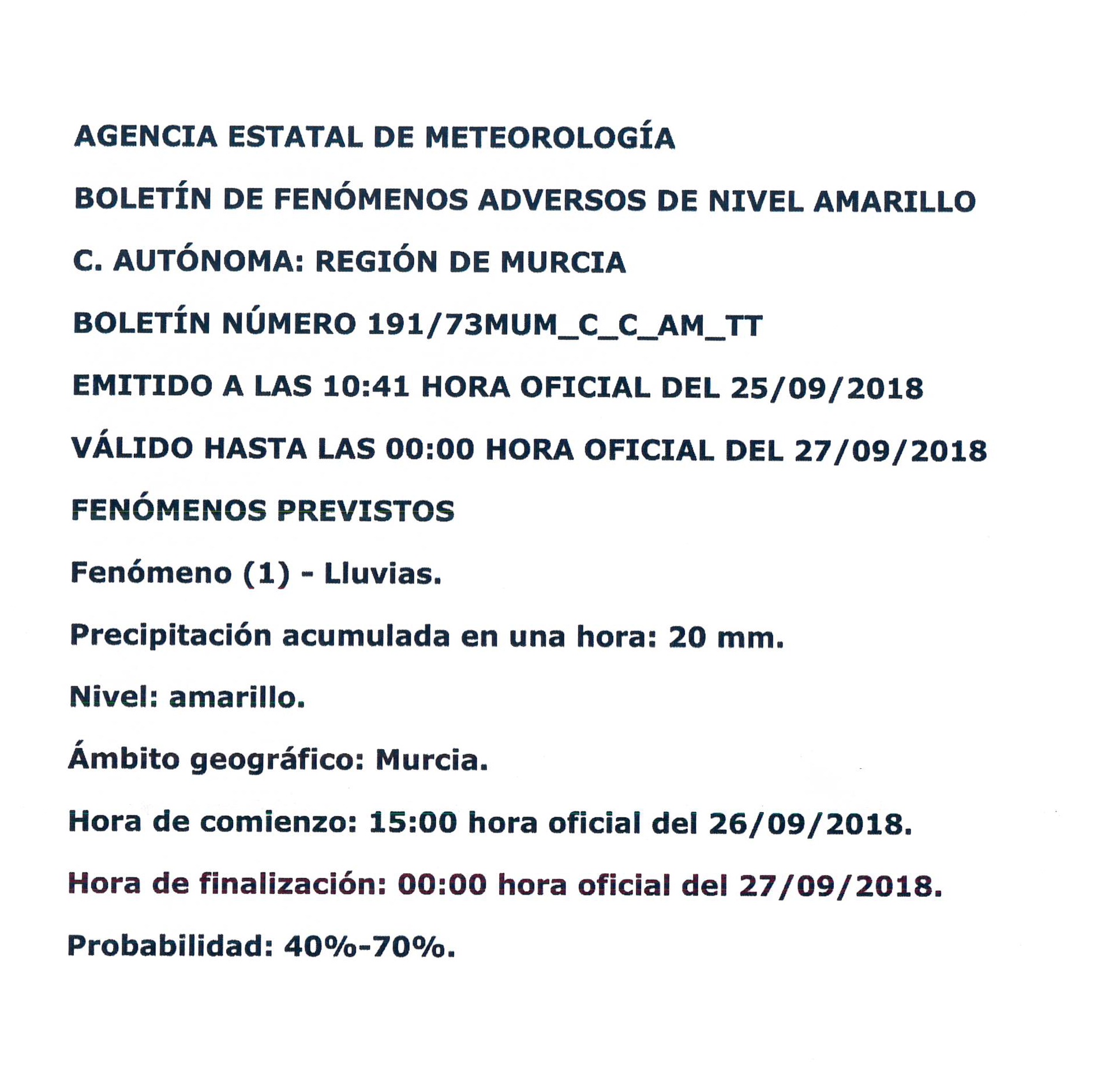 ALERTA POR FENOMENÓS ADVERSOS DE NIVEL AMARILLO Detalles Categoría de nivel principal o raíz: 8.-Información y Atención al Ciudadano Categoría: 8.3.-Participación Ciudadana Publicado: Martes, 25 Septiembre 2018 20:17 Visto: 53880 Anterior Siguiente